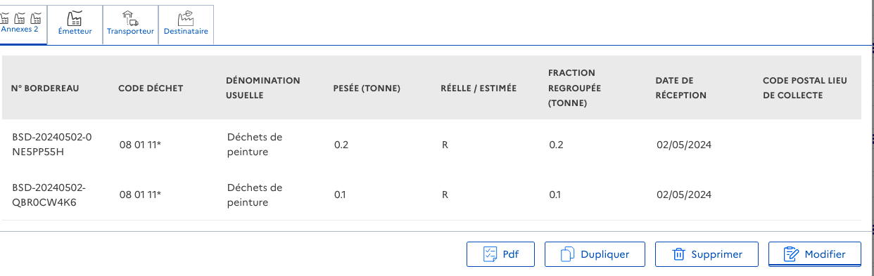 * Créez un Bordereau de suivi de déchets dangereux.&#x20;