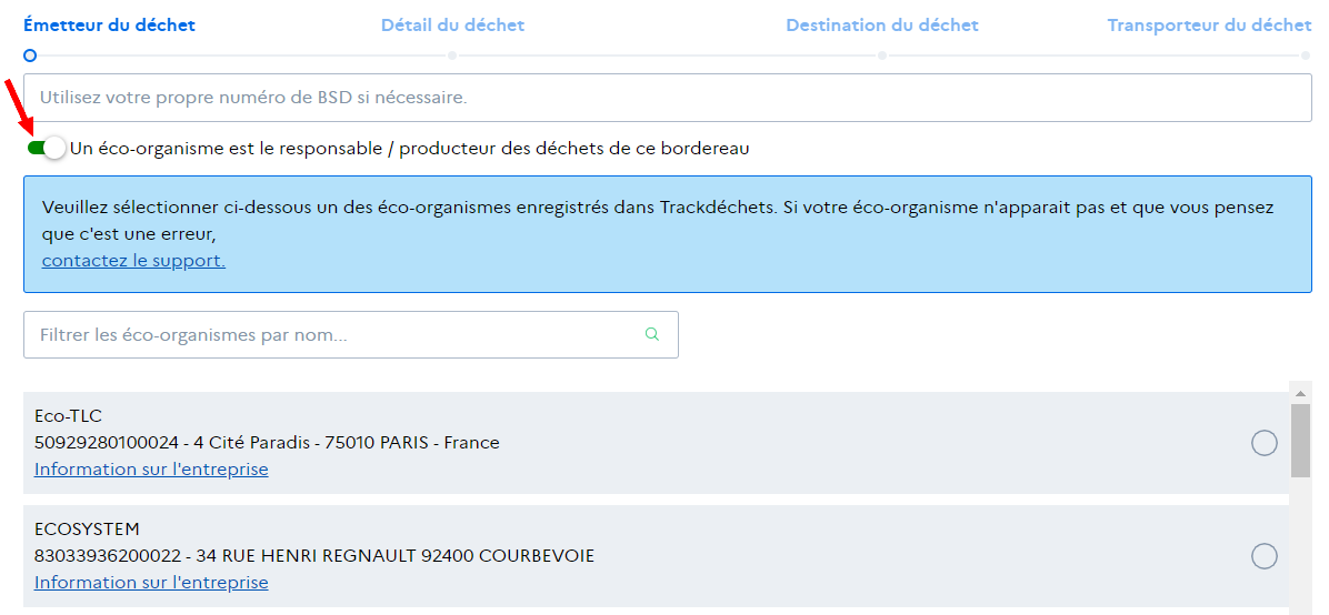 L'identification de l'éco-organisme sur le BSD ne suffit pas, même s'il est juridiquement responsable des déchets du producteur initial (ou point de collecte).&#x20;