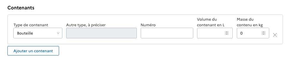 ### Je renseigne les contenants et la quantité (réelle ou estimée)